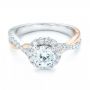 14k White Gold And 14K Gold Two-tone Halo Criss-cross Engagement Ring - Three-Quarter View -  102678
