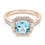 14k Rose Gold Aquamarine And Diamond Halo Fashion Ring
