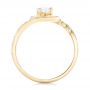 The client originally wanted a two-tone shank design using some combination of rose and white gold. But after viewing renders of several different color options, she decided to go with the solid yellow gold look. Each side of the band runs straight up until about the middle of the shoulder, where it curves to the right to wrap around one of the diamonds.