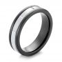 This ring features a notched white gold insert with a brushed finish in a black tungsten band.