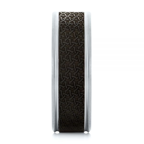 This ring features a patterned carbon fiber inlay with brush finished rails.