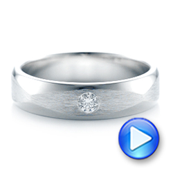 To make the pattern in the band more clearly visible, we used contrasting finishes on the different sections. This means that the outer, angled areas were polished to a high shine, while the flat middle portion was brushed. The contrast between these two really helps enhance the lovely lines of the scalloped pattern, and it highlights the sparkle of the single diamond as well. Design Your Own Wedding Ring