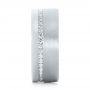 The band is 9mm wide and all platinum. The client’s inspiration piece was a two-tone design made of platinum and rose gold, but he liked the look of a single metal better. A line of channel set diamonds runs all the way around the band, splitting the top surface into two sections of very different widths.