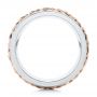 The majority of this band is made of platinum, with only the braided section in the middle made of 14k rose gold. This helps to emphasize the contrast between the two types of twisted metalwork on the top of the band, with the rose gold center section also sitting slightly higher than the ropes on the sides. Men’s Custom Wedding Bands