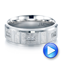 The pattern of segments is highlighted through the use of contrasting finishes, with the rails and notches receiving a polished finish and the raised surface of the center section scratched. This helps intensify the contemporary overtones of the ring as well, and you can experiment with different combinations of finishes as part of the custom design process to help produce just the look you’re after. Men’s Custom Wedding Bands