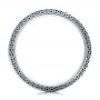 This men's wedding band has a polished center with machine engraving and black antiquing around the edges.