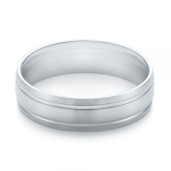 This ring features a brush finished exterior with polished grooves.