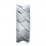 This band features a concave surface that leaves the outer edges as the highest point on the ring. The shape works well with the engraved design, which consists of a series of grooves outlining a braided pattern that wraps all the way around the ring. The groves even extend to the fronts of the ring, and this helps to make it truly seem like the band is made of several strands of metal braided together.