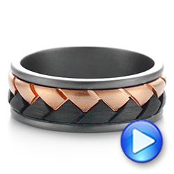 This gorgeous band features a two-tone style. The boldness of the black tone from the carbon fiber magically contrasts with the rose hues of the gold, infusing a chic and sophisticated look. This spectacular band is a cut above. The braid-like appearance gives a stylish and unique feel to this ring.