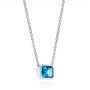 This elegant pendant features an emerald cut blue topaz bezel set in white gold and suspended from a delicate white gold chain. It's an excellent place to start if you're interested in developing your own custom piece, and you can modify it on its own or as part of a matching set that also includes earrings.