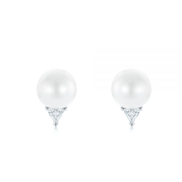 Round Pearl and Triangle Diamond Stud Earrings