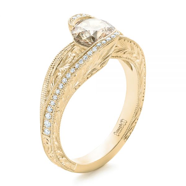 Custom Brown Diamond and Hand Engraved Engagement Ring