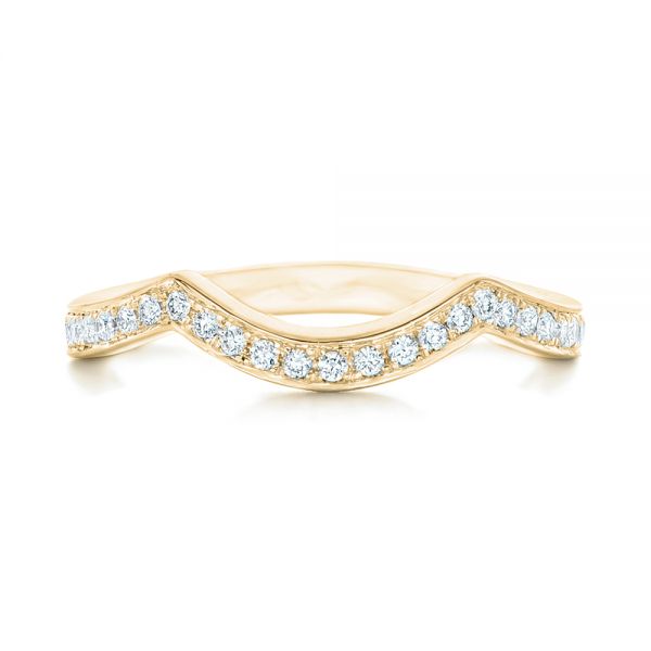 In addition to the matching diamonds, this wedding band is also contoured to follow the lines of the engagement ring exactly. This makes it seem almost like an extension of the engagement ring when the two are worn as a set. Rings like this can even be soldered together, since the dramatic contours of the wedding band make it impractical as a standalone piece.