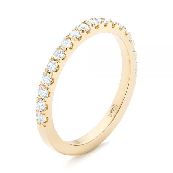 This elegant women’s wedding ring features split prong set diamonds running in a line across the top half of the rose gold band. It was created as part of a custom wedding set that includes another identical wedding band as well as an engagement ring for a client from Seattle, WA. The two wedding bands in the set are designed to be worn on either side of the engagement ring, providing a beautiful and symmetrical set that was exactly what the client was looking for. Design Your Own Wedding Ring