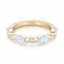 This beautiful women’s wedding ring features marquise and round diamonds bar set in an alternating pattern across the top of the narrow platinum band. It was created for a client from San Francisco, CA for whom we’d previously made a custom engagement ring. She came to us with an idea of the type of wedding band she wanted, and we used her inspiration pieces along with the other information she provided to develop a unique design that was exactly in line with her vision.