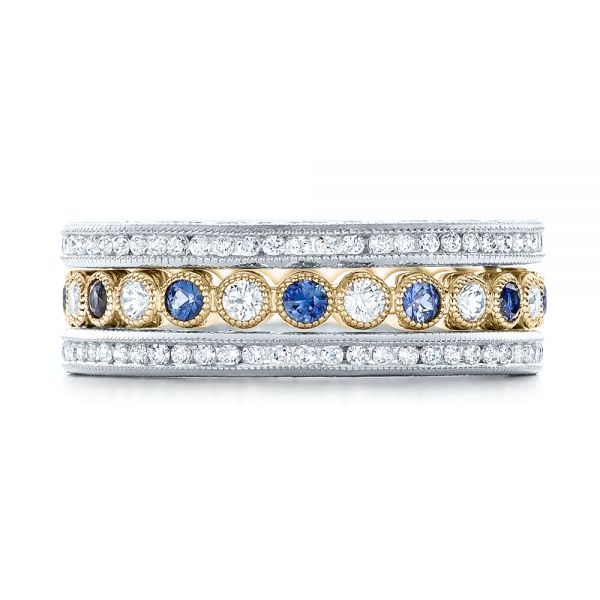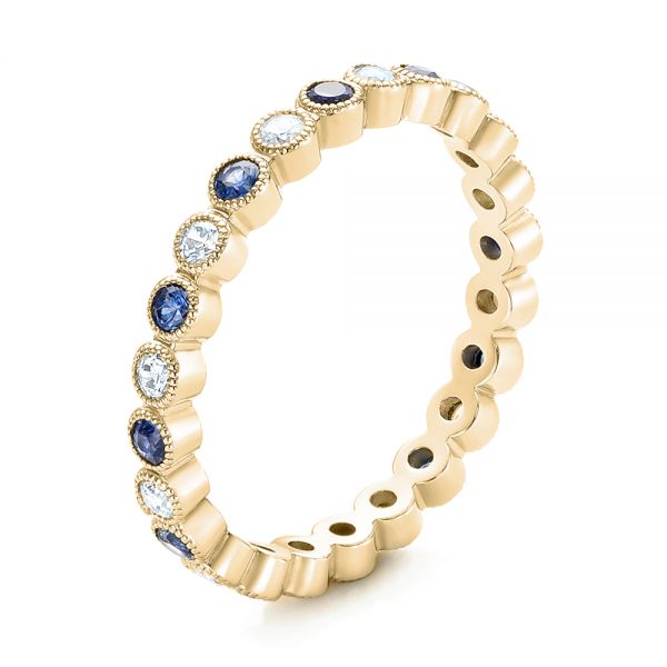 14k Yellow Gold Diamond And Blue Sapphire Stackable Eternity Band