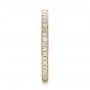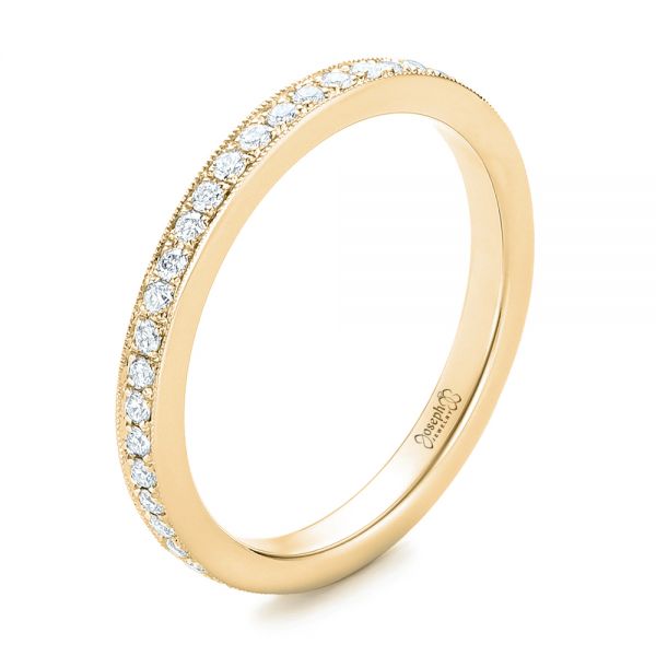 Taken together, the diamonds in this ring total 0.36 carats, and they’re lined with milgrain beading to create a nice, finished look. However, if you wanted to use larger stones, either to increase the total carat weight or to make the band larger, you could choose to increase the size of the diamonds used. This would necessarily decrease the number needed to go all the way around, and it could give the ring a more classical flair as well depending on how large you decided to go.