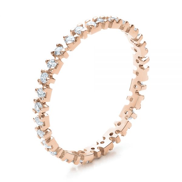 This women's band features round diamonds set into an unique three prong eternity band. Also available in different metals.