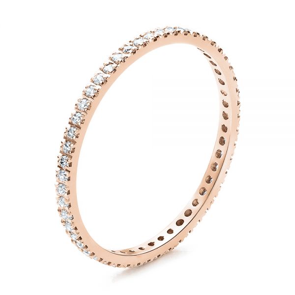 This women's eternity band features diamonds that are shared prong set around the ring. Also available in different metals.