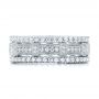 Customizing a ring like this might include adjusting the size of the diamonds, as making them larger or smaller would directly impact the width of the band. You might also experiment with different setting styles depending on the type of look you were going for or in order to match existing rings.