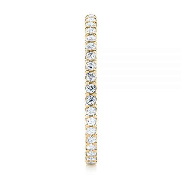 This delicate eternity band features round diamonds shared prong set in white gold running all the way around the ring. These stylistic choices produce a classic look bursting with glamorous flair, and it can be customized on its own or as part of a stackable set that also includes an eternity ring.