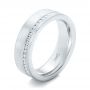 An eternity ring is a popular choice for a wedding band, but there are many ways to execute it. However, it’s common for the diamonds or other gemstones to dominate the piece. That’s one of the things that makes this ring so unique, as the row of diamonds here are offset and only take up a small portion of the total surface of the band.