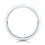 The stones themselves are round brilliant cut and channel set, which helps give the piece a sleek, contemporary feel when combined with the other design elements present. They also match the diamonds in the men’s band in setting type, cut, and placement, although the men’s ring only includes three diamonds as opposed to the full row.