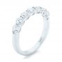 There are seven diamonds in this ring, which total 0.70 carats in weight when taken together. They are shared prong set across the top of the band, and this type of open setting allows them to take center stage in the design. The round shape of the diamonds dictates the contours of the top of the ring as well, and they’re slightly wider at their widest point than the band that begins at either side of the row.