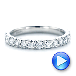 This lovely women’s wedding ring features round diamonds split prong set across the top of the platinum band. It was created for a client from Kirkland, WA as part of a custom wedding set that also included another identical wedding band, as well as a matching engagement ring. The two wedding bands in this set are designed to go on either side of the engagement ring, framing it perfectly while adding a glamorous sparkle for a truly dazzling display. Design Your Own Wedding Ring