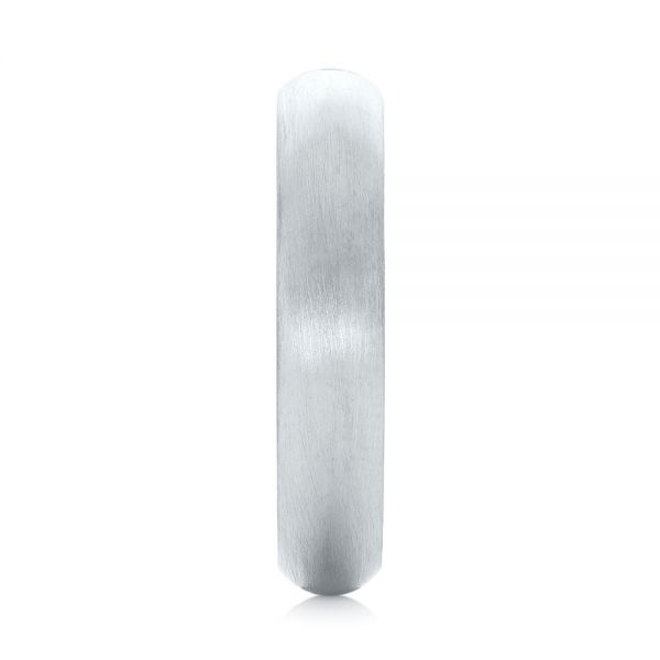 A 0.40 carat round brilliant cut diamond is flush set in the center of this ring, and its sparkle stands out against the soft backdrop of the brushed palladium band. The client wanted the diamond to extend across as much of the width of this ring as possible, and so we adjusted the size up as much as we could from our original model to achieve the look she was after. Women’s Custom Wedding Bands