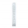 The 30 diamonds in this ring are princess cut and channel set. Their perfectly square shape allows them to sit flush with each other in a line, creating the look of a solid diamond band running around the entire ring. This arrangement is considered an eternity design because of the perfect circle the diamonds form, and it’s a popular option for engagement and wedding rings due to the symbolism it brings with it.