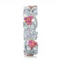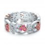 This lovely stackable eternity ring features diamonds and pink sapphires in a two-tone organic band, accented with milgrain. It is a beautiful piece on its own, and it also combines nicely with some other stackable bands, particularly eternity ring #101895, for an even more impressive display.
