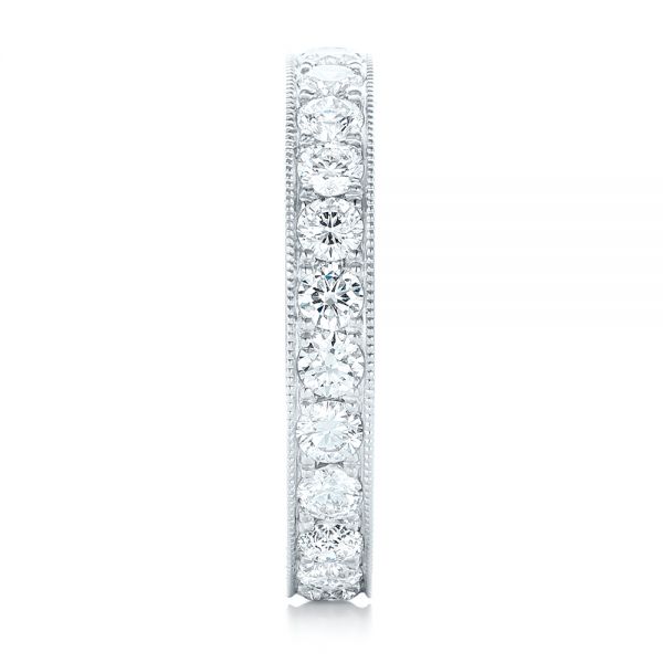 This dazzling women’s wedding ring features round brilliant cut diamonds bright cut set in white gold, with milgrain accents running all the way around the band. It can be paired with a wide variety of engagement ring styles, and we can help you customize it perfectly. Whether you can visit us personally in our Bellevue, WA showroom, or you prefer to coordinate your project online, our team has the skills and experience to ensure you come away with a truly stunning piece of fine custom jewelry. Design Your Own Wedding Ring