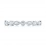 This ring is made of 18k white gold, and its outer margins move in and out following the contours of the individual sections that make it up. These are alternately marquise and hexagon-shaped, with the hexagons oriented so that two of their corners lie in line with the band. These corners are where the marquise sections meet the hexagons, and the way the pattern is repeated all the way around the ring gives it an intricate and delicate appearance. Women’s Custom Wedding Bands
