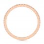 The band of this ring is straight and narrow all the way around and made of 14k rose gold. Its primary feature is the line of small, round diamonds that run along its top surface, starting from about one quarter of the way up each side. There are 35 of these diamonds all together in the ring, and they combine to total 0.26 carats. Women’s Custom Wedding Bands