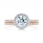 This elegant women's wedding ring features round diamonds split prong set about three-quarters of the way around the rose gold band. It was created for a couple from Kirkland, WA, who visited our Bellevue, WA showroom in person to begin the custom design process. We also designed a unique engagement ring for them at the same time, and the fact that they made both of these pieces together allowed the clients to ensure that the two rings would fit together perfectly when worn as a set. Design Your Own Wedding Ring