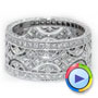 The middle portion of this ring is filled with an ornate filigree that integrates diamond and arch shapes in a vaguely organic way. The spaces between the shapes give the ring an airy and delicate look despite its 9.7mm width, and the way the pattern extends all the way around the band make it an eternity design. This type of ring is a particularly popular choice for an anniversary band, as it represents the unending nature of your love and the unbroken bond between you.