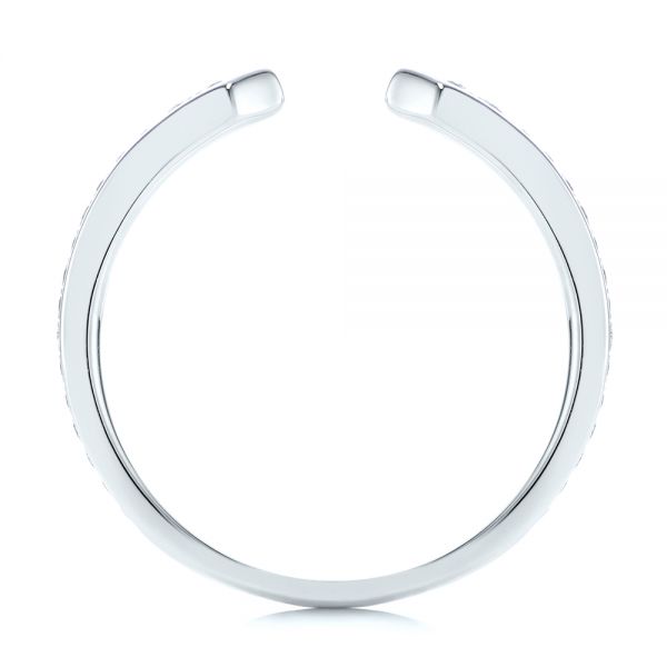 As the band rises up from the bottom on each side, it maintains a consistent width until about a quarter of the way from the top. At that point, it begins to widen slightly before narrowing to a point somewhat more dramatically. These are the points that frame the gap at the top and they add to the delicate feel of the piece overall. Fashion Rings