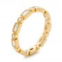 This elegant eternity ring features an alternating pattern of round and baguette diamonds bezel set in yellow gold that continues all the way around the band. It’s a stackable design that can serve as a wedding or anniversary ring, and it’s a piece we can work with you to customize in any number of ways. In addition to being customized on its own, this ring can also be customized as part of a matching set that includes stackable bands #101945 and #101943.