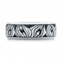 This women's wedding band is machine engraved with a leaf pattern that is accented with black antiquing and diamonds.